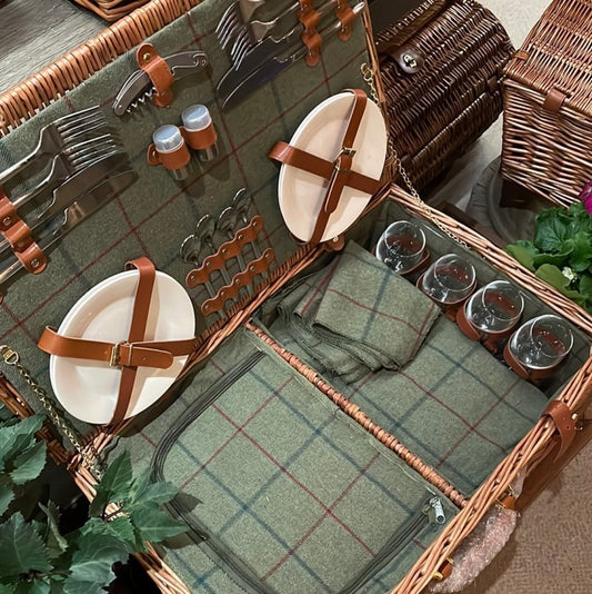 Luxury 4 Person Picnic Basket (Green Tweed)